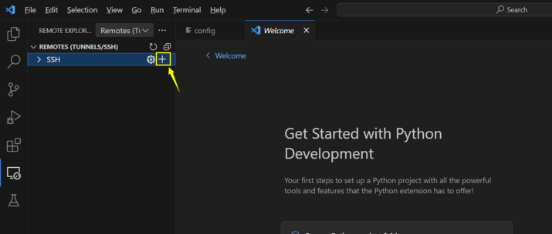安装完成之后,选择左侧的remote explorer,点击该选项卡进入ssh targets的添加