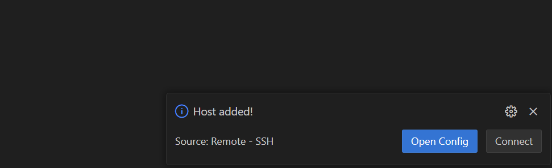 在点击这个保存地址后,右下角会出HOST added提示框,如果选择open Config会打开刚才保存的config文件,里面是连接相关的信息,如果选择Connect则会进行与服务器的连接