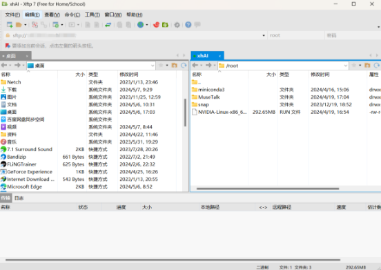 上传or下载数据的简单方式:直接在Xftp中拖动文件