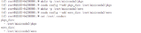 执行以下命令设置将虚拟环境安装到/root/miniconda3/envs, 包缓存到/root/miniconda3/pkgs