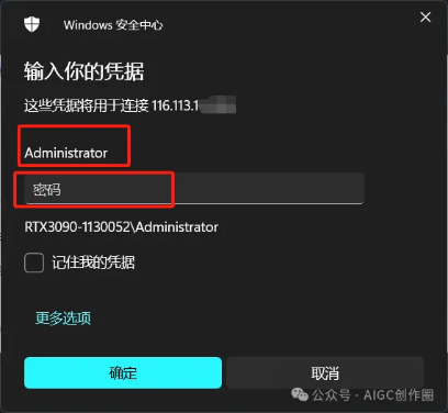 弹窗提示输入用户名和密码,依次把网页上的复制粘贴过来,点击确定就可以登录云电脑了