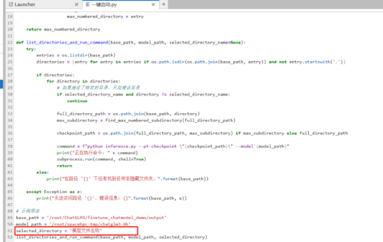 翻到最下面倒数第二行:selected_directory = \'模型文件名称\'