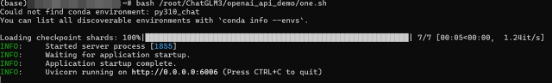 bash /root/ChatGLM3/openai_api_demo/one.sh等待终端进度条跑完,并出现输出提示: