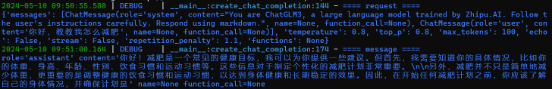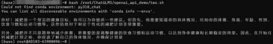 bash /root/ChatGLM3/openai_api_demo/two.sh这一步骤完成后,你将看到一个关于减肥的内容。