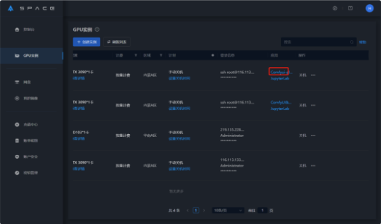 3.创建成功等待4-5分钟,等虚拟机开启,开启成功后,打开应用,即可使用【用户X-comfyui包含全基础插件】镜像