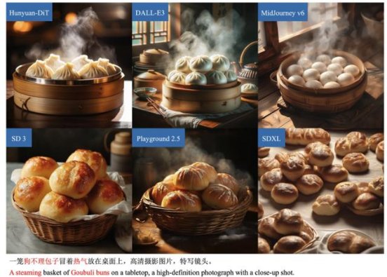 比如同样是含有“昆曲”、“狗不理包子”关键词的Prompt,对比不同对文生图模型,混元生成了最匹配对图片: