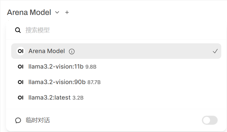 点击左上角Arena Model按钮选择需要的大模型,目前已内置Llama3.2 Vision 11B多模态大模型以及Llama3.2 3B大模型。
