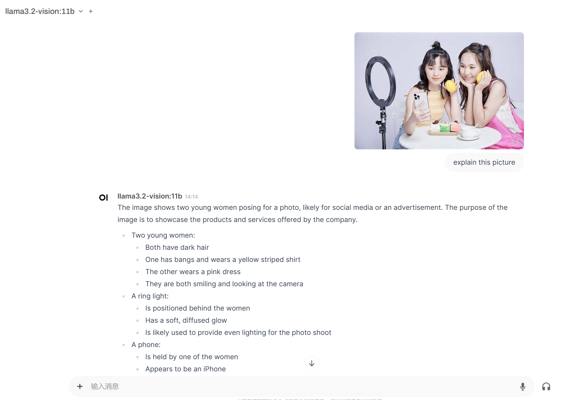 等待片刻,即可收到Llama 3.2-Vision识别图像后的回复。
