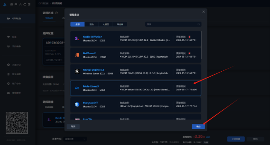 3、选择镜像市场,点击更换镜像,选择【Meta-Llama3】,最后点击立刻创建即可