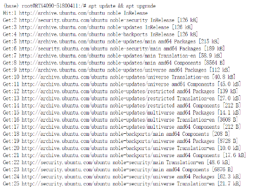 查看完显卡状态后,对现有的Ubuntu镜像的系统软件、显卡驱动、各应用软件进行升级以满足自身需求