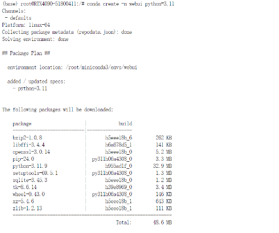 首先通过conda创建一个python3.11版本的虚拟环境,防止多个环境在云主机里并存从而造成冲突