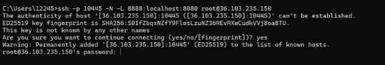 成功启动后,使用ssh隧道映射web服务,新开一个窗口后输入如下格式的命令