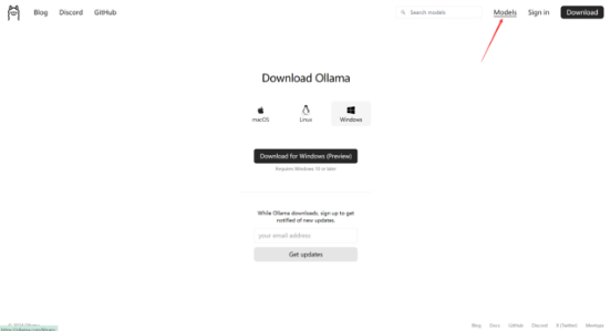 Ollama官网地址:https://ollama.com/ 访问ollama界面,选择Download安装