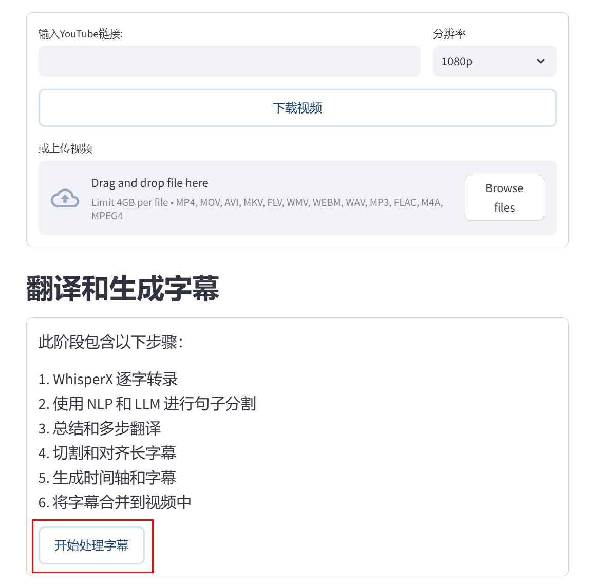 通过直观的Streamlit网页界面,用户只需简单操作即可完成视频字幕生成、翻译及配音等流程。 支持跨语言字幕创作,实现低成本、高效率的视频制作。