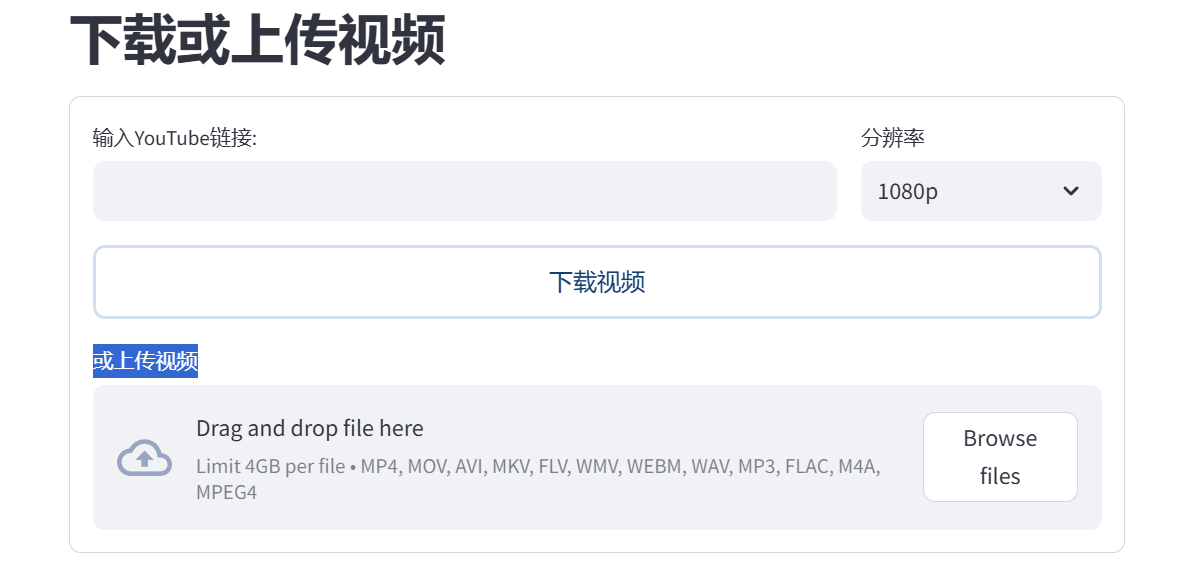 API有效即可继续以下内容 选择上传或从链接下载视频