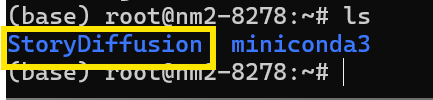 通过ls命令查看目录,如果有StoryDiffusion存在,说明克隆成功