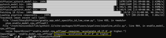 pip install accelerate下载完成后运行gradio_app_sdxl_specific_id_low_vram.py文件,由于使用huggingface时下载连接不稳定,会出现连接失败的提示,因此需要进行一些配置
