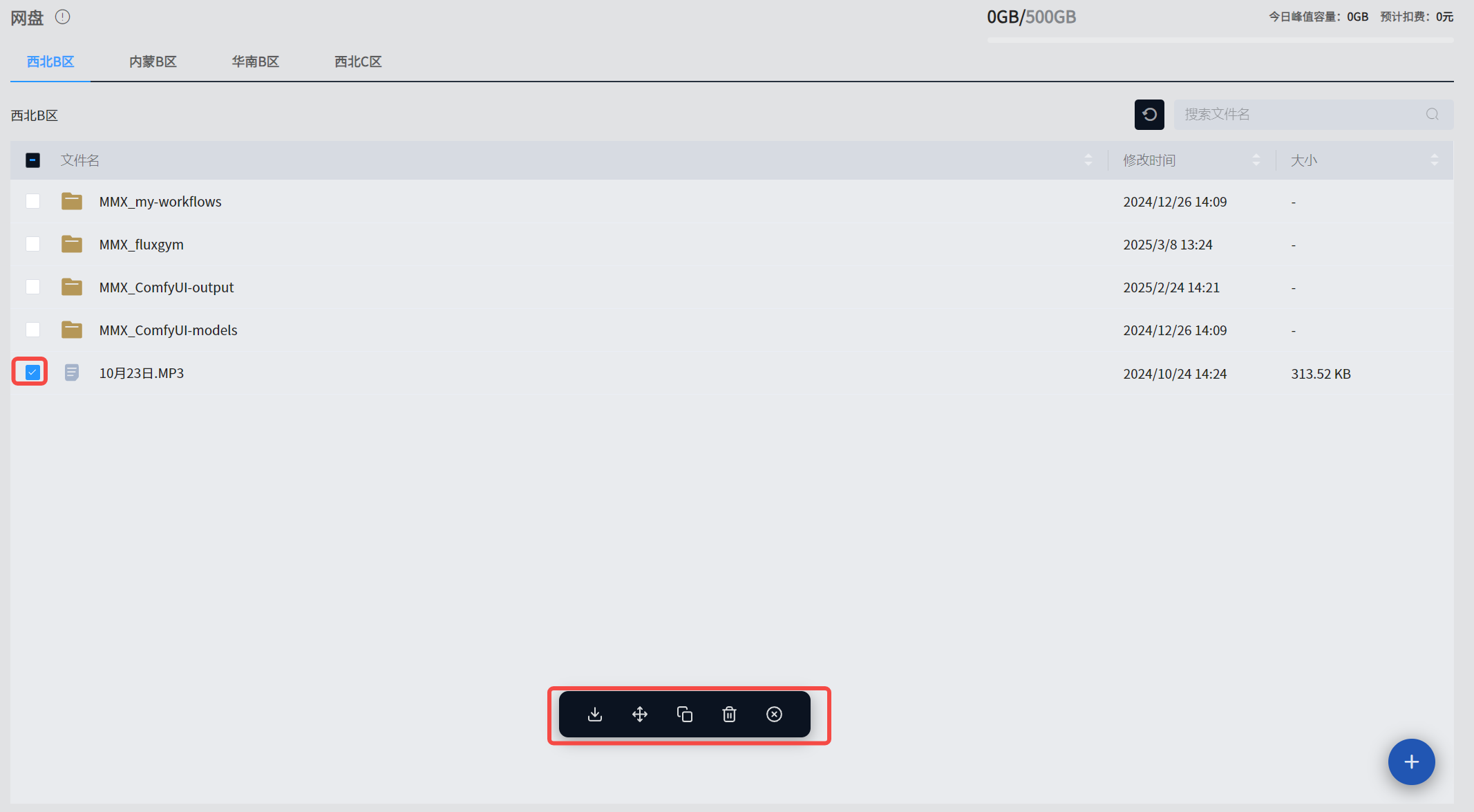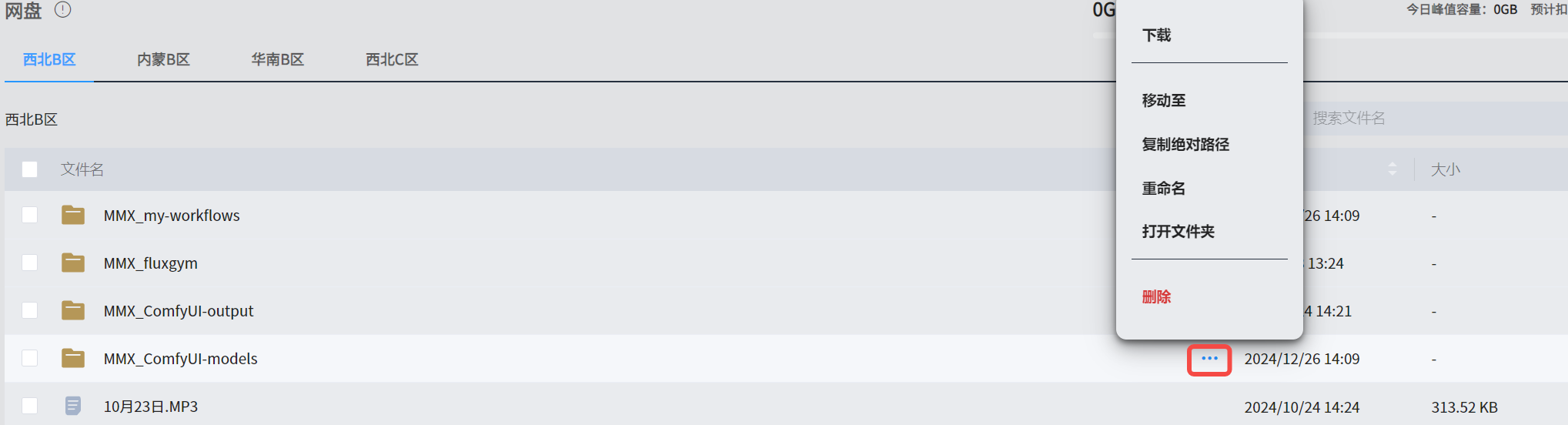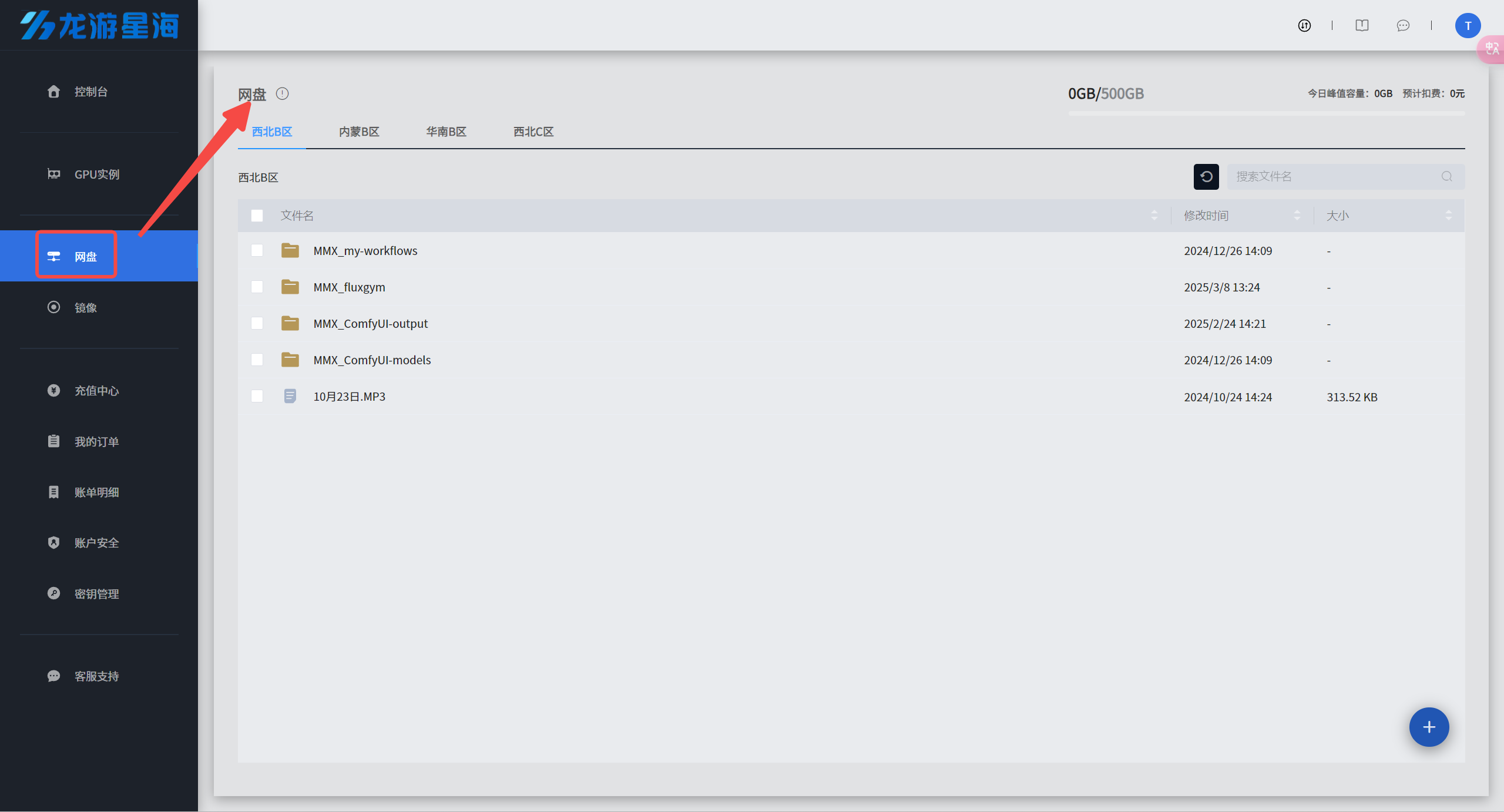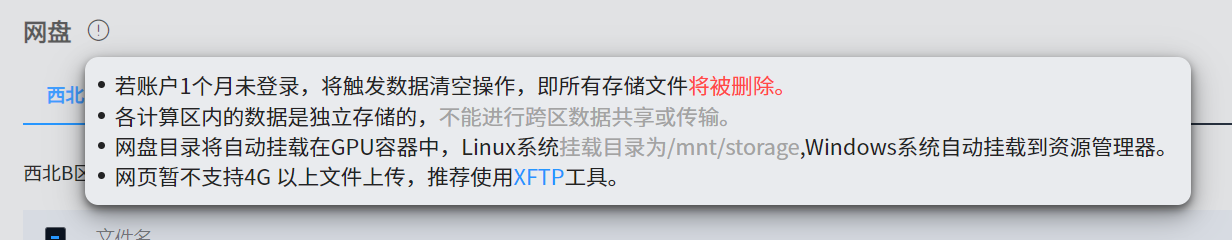 实例只能调用同一个大区的网盘文件。