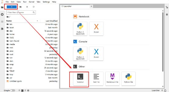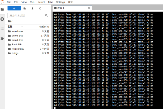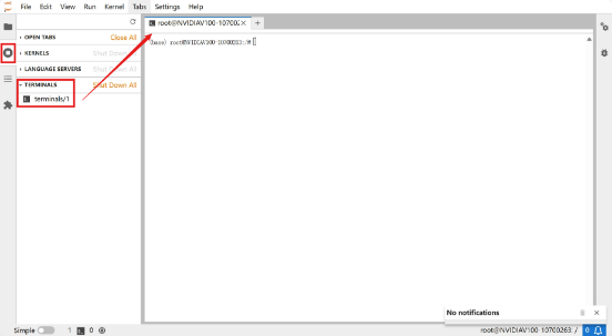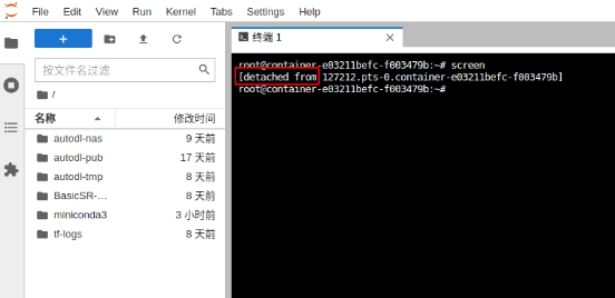 打开时如果终端什么也不显示,按回车键即可。在使用JupyterLab长时间跑代码的过程中强烈建议对日志重定向,防止断网后中间的日志没有了。