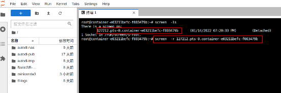 - screen,此外还有常用的tmux(如需安装执行:apt-get update && apt-get install -y tmux)工具,这里不做介绍